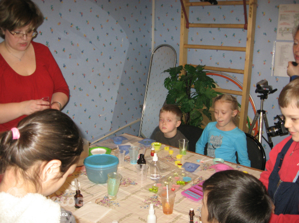 А дальше нас захвати мыловареный процесс. Все увлеклись, раскраснелись. А больше всего увлеклись мамочки. Еле угомонились.