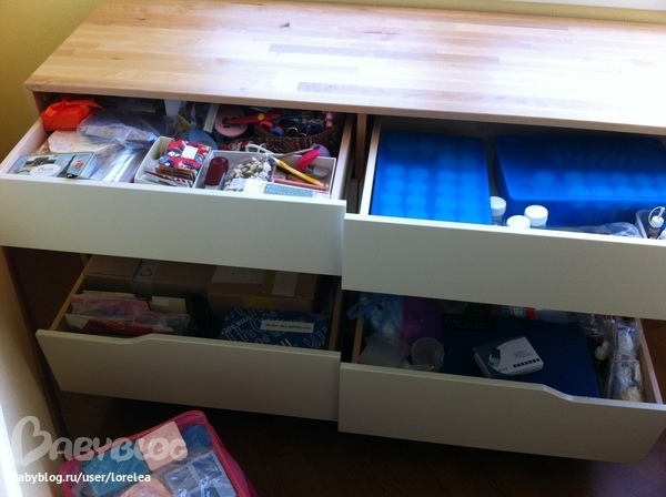 Зато у меня есть теперь там стол и "Маленький" комодик. Не подозревала о масштабах всех моих рукодельных дел, ведь в комоде поместилось только все (но не все конечно, но я об этом скромно умолчала) для мыла, а ведь есть еще захомяченные вышивки, наборы, станок для вышивки, шерсть для вязания. В общем, посмотрев на все мои запасы, я поняла - это диагноз.