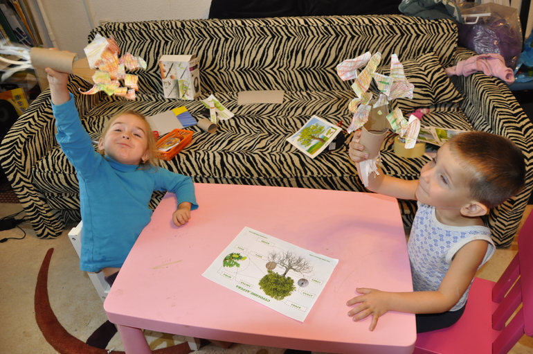 Я читала стихотворение, а Викуля с Тёмой пытались заполнить паузы нужными понятиями: ствол, ветки и т. д.