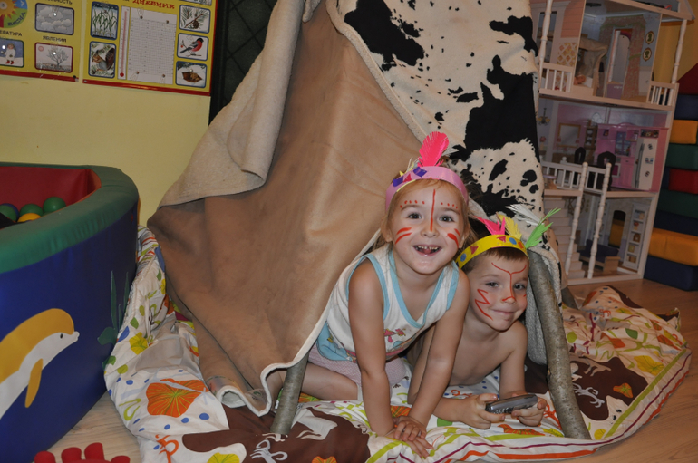 Через игру ребята узнали о быте индейцев, Артём узнал что такое охота и рассказал нашему папе о томагавке, луке и копье)