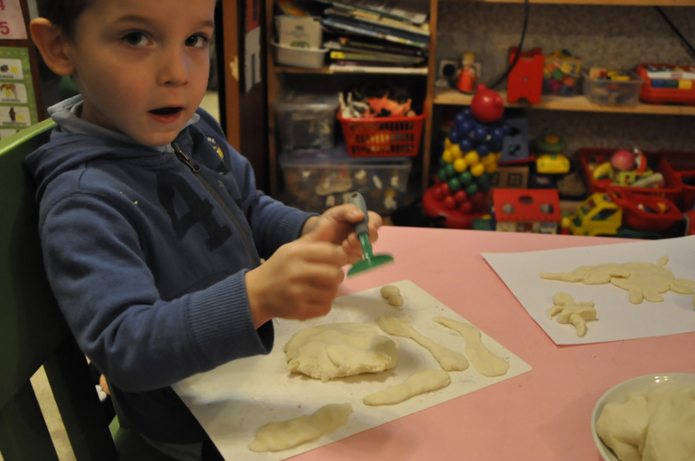 Вечером по плану должен был быть вулкан, мы сделали солёное тесто, немного поиграли и... уехали в бассейн. Сегодня продолжим)