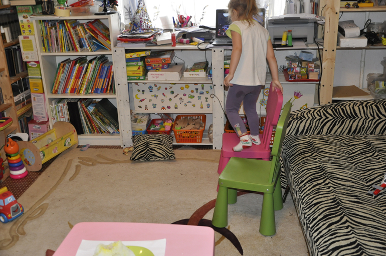 Дальше было видео водопада, вставлять не буду, на ютюбе много роликов. Дома с водой по техническим причинам заниматься очень сложно, но ребята придумали свою реку с водопадом. Они бегали по комнате, забирались на вершину и подобно водопаду прыгали с обрыва вниз))))