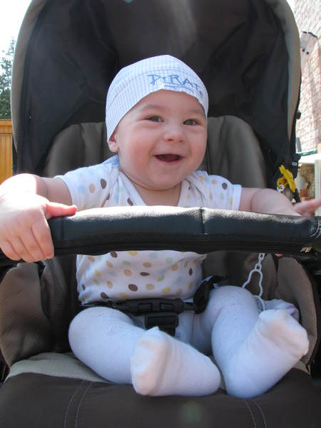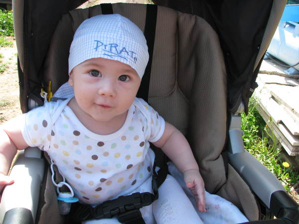 13 числа нам было 9 месяцев! Мы наконец то научились сами сидеть уже хорошо, без поддержки и по-разному - с ногами подогнутыми под попу))) Весим 10 кг. 700 гр., тут проболели неделю, плохо кушали, но надеюсь, не сбросили! Рост 76 см. Кирюша настоящий мужчинка - очень хорошо пропорционально сложен, тьфу тьфу))) НЕ толстый и не худой - прямо то, что нужно)) Это я так считаю))))))) Но оооочень симпатичный мальчик у меня!!! Ползает просто с реактивной скоростью)) Хотела ограничить его комнатой - оборудовала ее как следует - одеяла на полу, по пириметру подушки, игрухи валяются, но нет, там долго не играет - ползет ко мне в гостинную на холодный кафель(( И ничего не сделаешь - в манеже орет, чтоб выпустили)) В комнате только со мной и с закрытой дверью играет, а мне ведь дела надо делать!!! Вот и одеваю теплые колготки. ползунки и вперед по полу... Боюсь, поэтому и болели(( Болели жутко - неделю темп., 2 дня 38,6 и больше ничего!!! Ни зубов новых не вылезло, ни кашля, ни сопель - ну и слава БОГУ!!! Все прошло. начинаем нормально кушать и спать днем наконец-то в своей кроватке!!! Я думала уже она так у нас и простоит как монумент))))) Уже сняла балдахин, постирала белье, постелила новое и вот после болезни начала днем укладывать - второй день удается!!! Сама в шоке))))