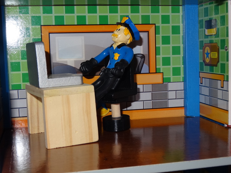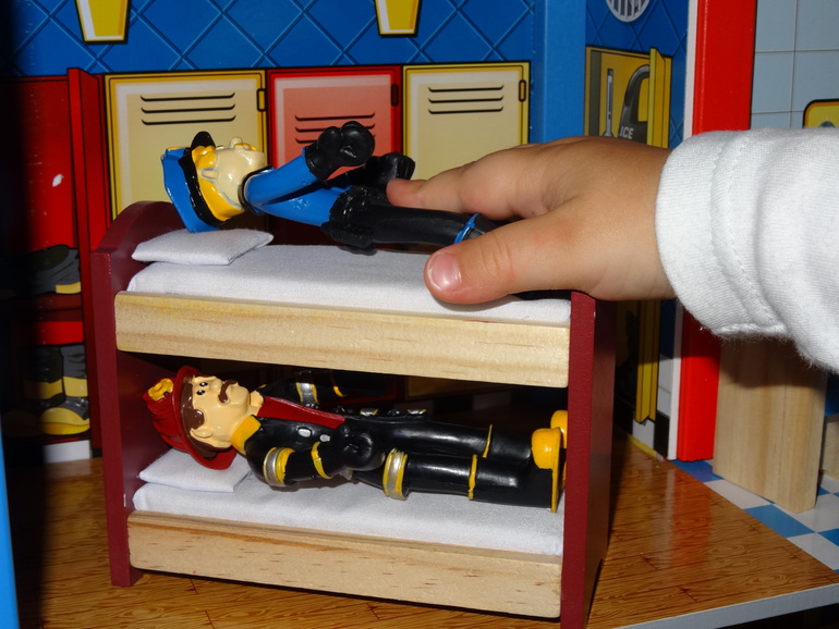 Сначала я скептически посмотрела на фигурки полицейского и пожарного. Резина какая-то непонятная, фу фу фу, но оказалось, что этот материал способен гнуться в разные стороны. Так что их можно и на стульчик посадить, и в ванной искупать. Делать можно много всего, комнаток как видите немало. Для каждой практически предусмотрена какая-то мебель. Можно устраивать перестановки бесконечно.