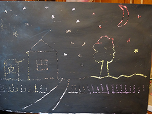 P.S. Хвост с прошлого раза )) Наверное, толстый слой гуаши был, мальчику не хватило сил царапать. Так что ДЗ делал за него папа ))