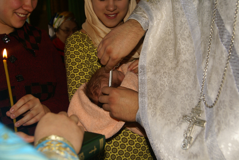 СерафимкаНам вчера было 40 дней. В Покровском храме состоялось крещение нашей малышки. Теперь Серафима полноценный член Церкви. Очень хорошо все прошло, спокойно. Сима заплакала только от неожиданности, когда вытащили из воды. И потом, когда все закончилось - после крещения, от усталости и голода)) Наши крестные родители - настоятель храма и наш духовник о.Евгений и моя сетренка Надюша. Далее - фото! Прошу под кат)