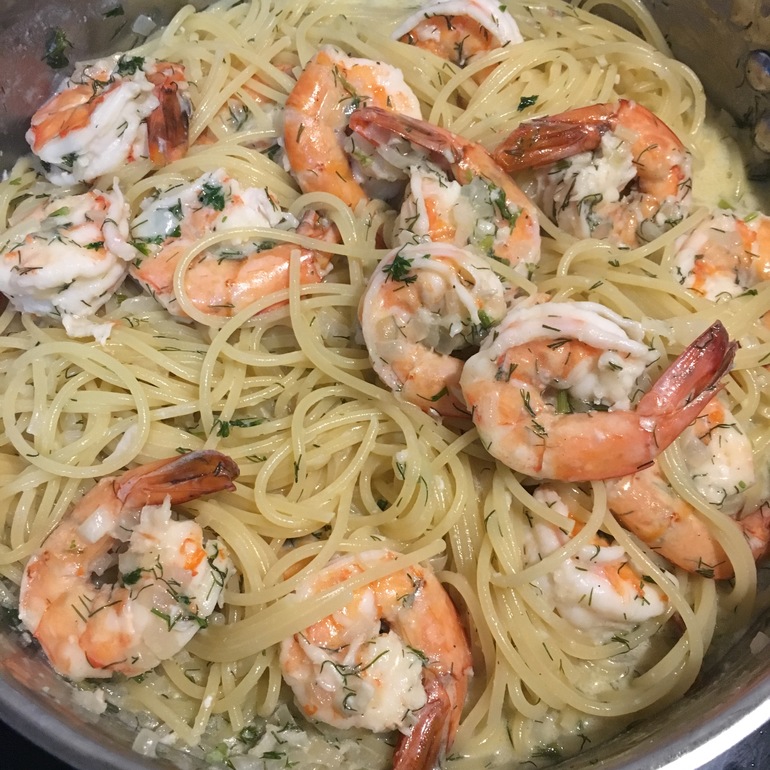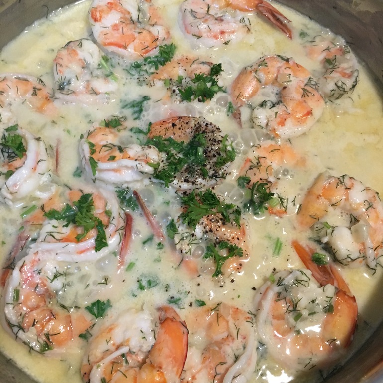 Это базовый рецепт, так можно добавить все, что душе угодно (я ещё мидии добавляю, выглядит очень эффектно), соус хорош как и с пастой, рисом или чиабаттой, как и абсолютно самостоятельное блюдо...ммм...