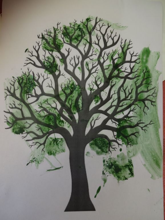 Зеленую краску нам подарило дерево за то, что Женя нарисовал ему листочки: