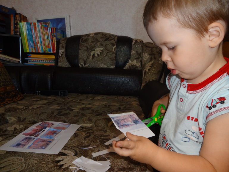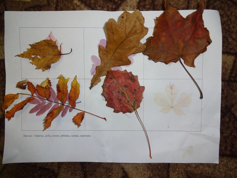 Дома раскладывали найденные листья как лото, Жене очень понравилось, потом повторял несколько раз за неделю.