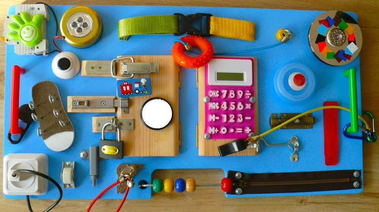 Когда родился младший, я заранее выбрала и приобрела нашу Доску! И это потрясающе как быстро ребенок начал в неравной борьбе со старшим братом осваивать эту игрушку Все вертелось, крутилось, нажималось, щелкало и более того можно было ВСЕ!!! Захотел вилку в розетку воткнул, захотел кнопку нажал и загорелся свет. Шнуровка, калькулятор и даже походный стаканчик надолго занимали детей. Могу сказать, что ни разу не пожалела о приобретении и более того не раз покупала доски в подарок Друзьям). Сейчас у нас уже здоровенная доска на которой дети отрываются по полной и реализуют все свои "папа сказал Нельзя")) Места все меньше, а идей все больше