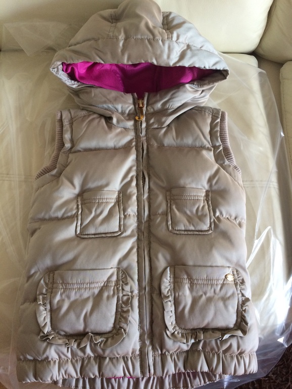 Пуховая жилетка Juicy Couture 7 л. Можно носить наверно до 130, если ребенок худенький. После химчистки, одевалась не часто. 2000 руб.