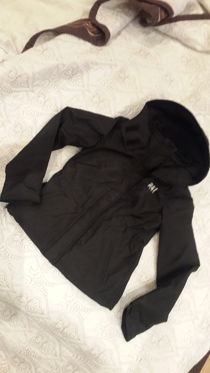 Пристрою ветровку на флисе,черного цвета для девочки лет 12( L).Цена 3000руб.