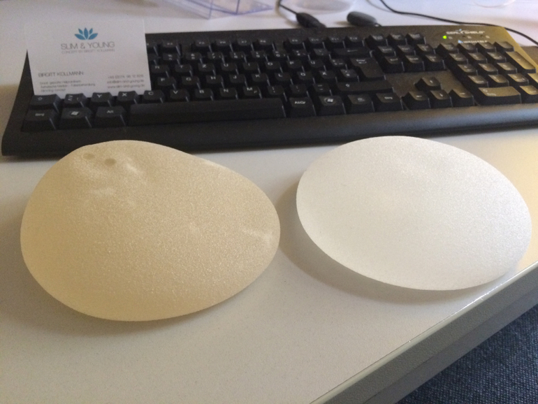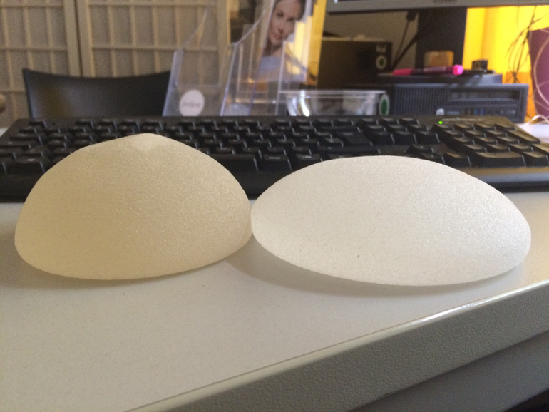 Слева 310 граммовый имплантат высокого профиля. Справа - 375 мл среднего профиля.
