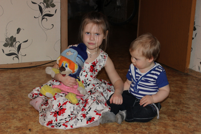 Дашулька хоть и дубасит сына периодически,но привязанность к малышу все-же сформировалась! Уже иногда играют вместе,даже без драк)))