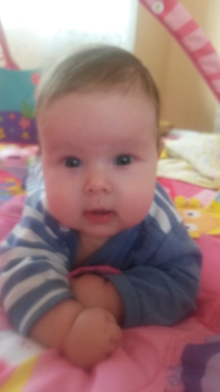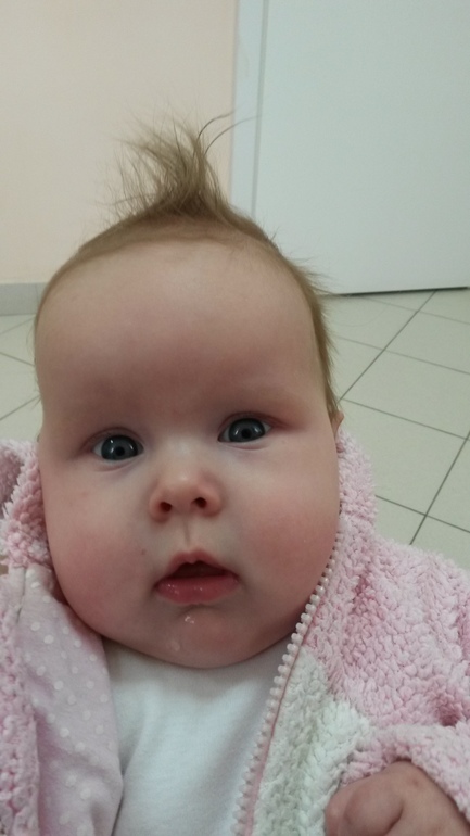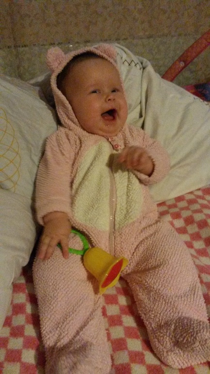 Машенька быстро растет, и весит 7600, увесистая малышка! Очень жизнерадостная, весь день улыбается. А вот развеселить, чтобы смеялась, это надо очень постараться)