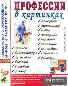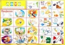 4. Карточки “Профессии” серии Учимся читать с пеленок. Покупала в “Маленьком гении” 24 карточки профессий и 24 карточки инструментов, необходимых для этих профессий, 1 карточка со стихами. Терапевт-стетоскоп, модельер-манекен, фотограф-фотоаппарат, пожарный-топор, повар-кастрюля, пекарь-скалка, секретарь-ручка, тренер-свисток, учитель-тетрадь, телеоператор-видеокамера, слесарь-ключ, химик-колба, официант-кофе, визажист-помада, закройщик-ножницы, строитель-каска, столяр-гвоздь, актер-маска, дирижер-ноты, парикмахер-фен, модель-платье, хирург-скальпель, библиотекарь-книга, скрипачка-скрипка.
