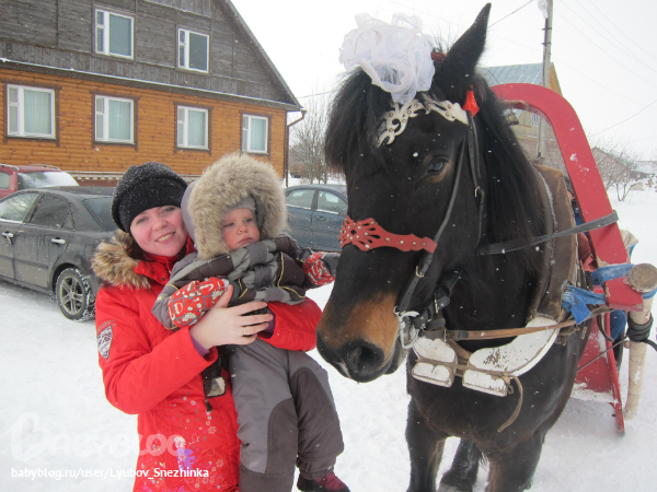 Второй день прошел на УРА) В Суздале начался праздник с гусиных боев в деревянном подворье. Правда, мы с Никиткой туда не попали - Никита уже задремывал в санках по пути к городищу. До дома мы решили прокатиться всей семьей в санях с лошадью - первую минуту Никитка испугался, а потом даже понравилось ехать с ветерком - у мамы-то на ручках) Потом были блины, медовуха, сооружение Масленицы, игры за столом... Когда пошли сжигать чучело, самых маленьких оставили дома - не дай бог, испугались бы сильно... Наша масленица долго горела) Зима не скоро уйдет) Никита заснул в 22ч и спокойно проспал до 9 ч утра, а мы вдоволь наобщались, напарились в бане, наигрались в Мафию( это очень занятно!)))