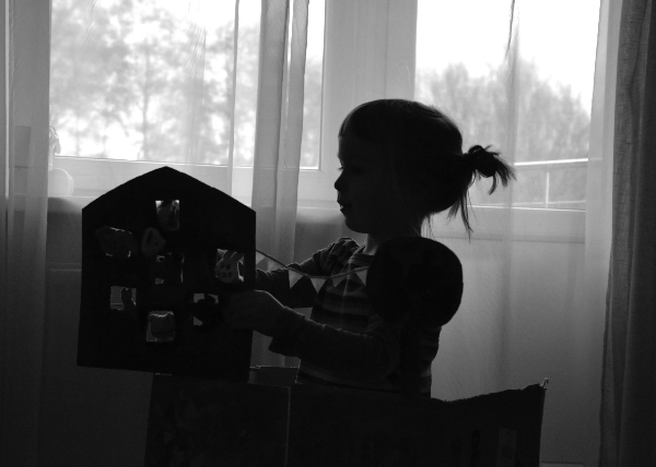 обычно по очереди. я, конечно рассказываю громко и старательно. а Настя показывает такой совершенно камерный тихий спектакль. свой. личный. но все равно очень важно смотреть и хлопать :)