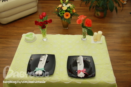 Где-то в середине ужина я сказала что у меня есть для него небольшой подарочек и он должен его найти сам..............Муж заметался по комнате в поисках подарка.....заглядывал всюду!!!!