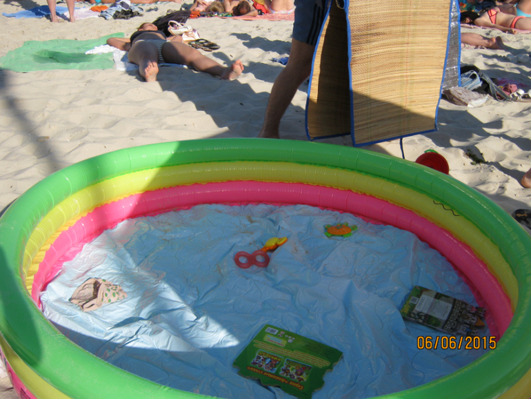 А для отдыха на море мы облюбовали 16 Ст. Б. Фонтана. Спуск конечно там не ахти, но зато пляж и песочек аккуратненькие и чистенькие. На пляж мы ездим на маршрутке, без коляски, с кенгуру.Спасибо куме, подсказала отличный выход из положения - купили бассейн и используем егов место манежа на пляже для Наташика :)) Она там долго копошится с игрушками, а старшие балдеют на песочке с пасочками или просто дурака валяют. Ну и конечно купаются. Ходим пока без кругов, папа с ними у берегов плещется с каждой по очереди. Не много фото с пляжа, часть сделала Маргоша.
