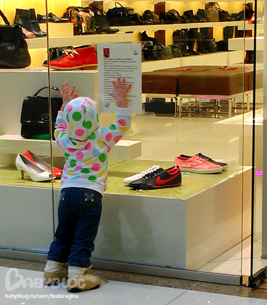 В магазине веселенькая фоточка!)))))Сразу видно девушку-мимо обуви не пройдет!