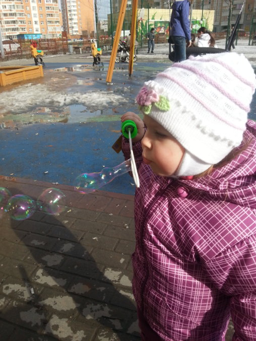 Обожаю, когда детки по лужам бегают ))) Это так беззаботно )) Варя сама мыльные пузыри пускает, молодчинка )