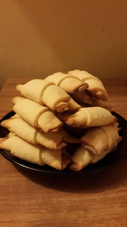 В-третьих, я исполняю свою мечту - учусь печь! Я очень хочу стать такой же замечательной мамой, как мои мама и бабушка. А одно из огромного количества их достоинств это то, что они просто божественно готовят всякие вкусняшки из теста. Мало того, что я сама с детства обожаю выпечку в любом виде, но я хочу, чтобы мои дети тоже кушали не магазинные сласти, хочу чтобы и у них было счастливое и вкусное детство, чтобы они гордились своей мамой! Ну и поэтому по мере съедания очередного кулинарного эксперимента я готовлю новый. Не всегда мои поделки удачные, но я же учусь! Сегодня это были нежнейшие рулетики из песочного теста с начинкой из персикового повидла! Готовлю их уже во второй раз по просьбе мужа! Очень уж удачный попался рецепт)))