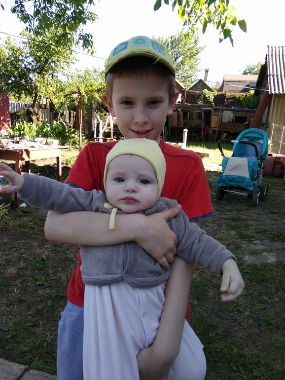Гуляем на улице чаще на сон, после на руках изучаем природу. Любит листики рвать и цветочки дербанить. А с собаки прям глаз не сводит, будет крутить головой в поиске его. Кот так не впечатляет.