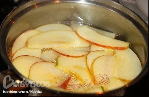 Отварить дольки в сахарном сиропе до мягкости (минут 3-5).