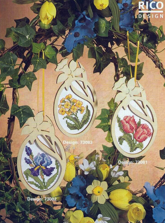 Готовясь к Пасхе, обычно стараюсь подобрать что-то, что еще не отшивалось и радовало бы и меня, и окружающих. В этом году я таким образом еще и решила вопрос с подарочками для близких и знакомых)) Итак, в сети мне встретилась картинка из древнего RICO. Схемки там же, раскладка была под мой любимый Anchor.
