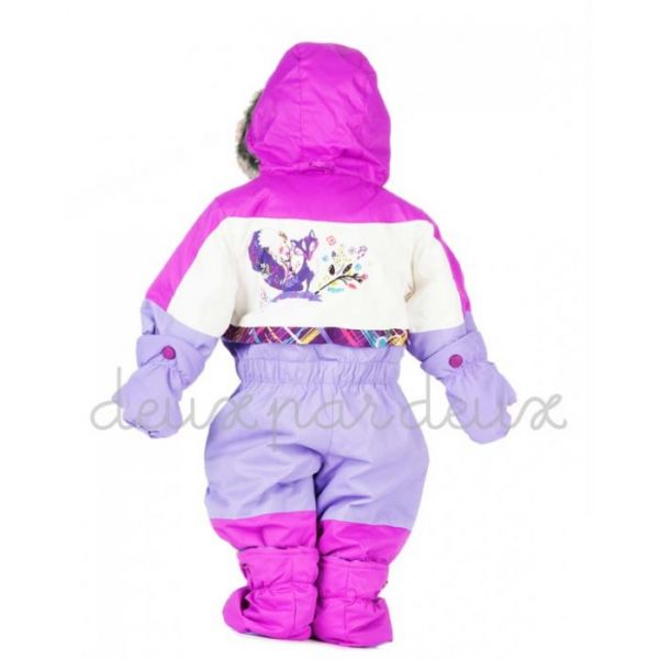 Сейчас со светом по цветам немного уводит, они яркие вживую, но приятные, но хоть модель видна. Внутренняя утяжка есть, можно на талии утянуть, рукава регулируются липучками. Варежки и пинетки пришиты, как на всех малышневых Дюпарах, но их легко отрезать.Про почту — а Вы же в Москве вроде? ))
