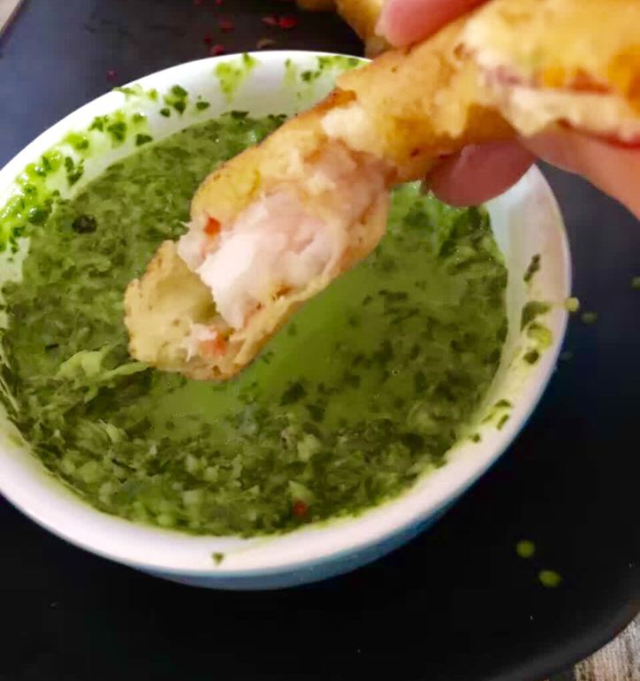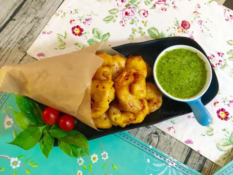 Кляр вкусный, сырный, пушистый и хрустящий...очень хорошо оттеняется соусом из лимона и базилика