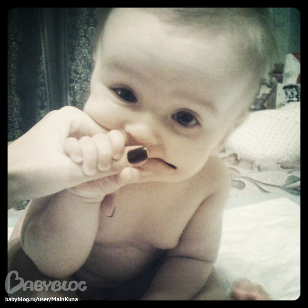 грызет мой палец, врач сказала, что нижние десна опухли... ждем зубов
