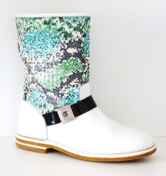 фурнитура черная, весь сапог из одной кожи в черные круги!