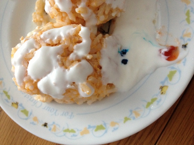 Сегодня такой весёлый ужин. до ёжиков Вика рис как гарнир не ела, говорила фи!