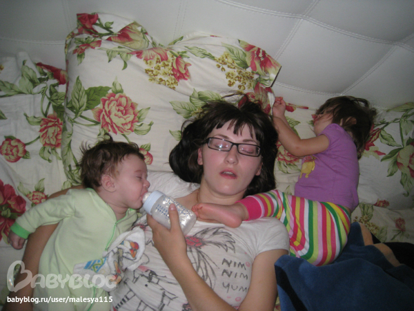 у меня есть подобная фотка тока с Полей)))а у вас 2 ребенка)конечно,выматываешься. Фотки угарные)))))очень мило и реально. А то вечно супер накрашенные мамашки)вот он-реальный мир мамы