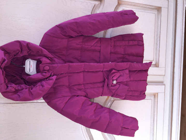 Утеплённая курточка Lacoste, размер 6( носить можно раньше). Есть загрязнение от смазки качель. Думаю, можно вывести. С пряжки краска облезла. Цена 1500 р