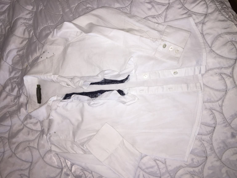 Молочного цвета блуза Richmond, есть пятнышки на рукаве. Цена 500 р