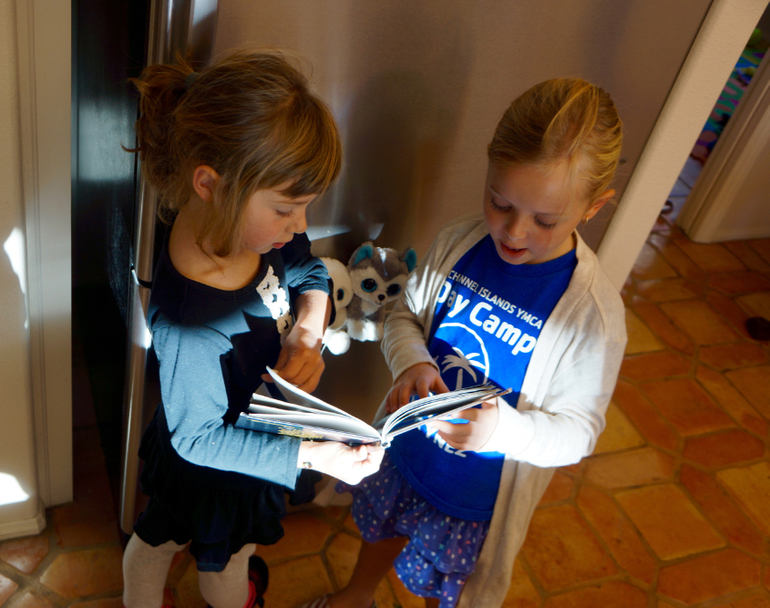 Девчонки уже такие взрослые прямо! А сынок само умиление,ангелочек земной с папой читает)