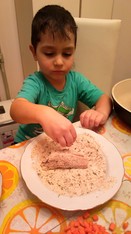 Рыба самая обыкновенная -минтай. Сейчас расскажу как делает ее мой муж, а сын ему помогает (рыбу у нас всегда готовит папа).
