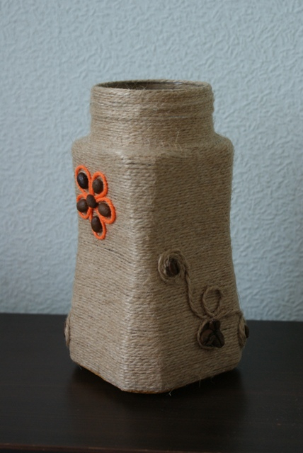 А это мы пробовали первый раз преобразить банку в вазу:) Вот что получилось: