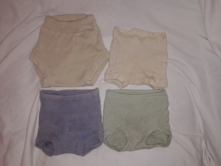 Наппи тонненькие. Верхняя резинка распорота. Есть дырочки на шерсти. Подсвалявшиеся, размер теперь 0-4 мес