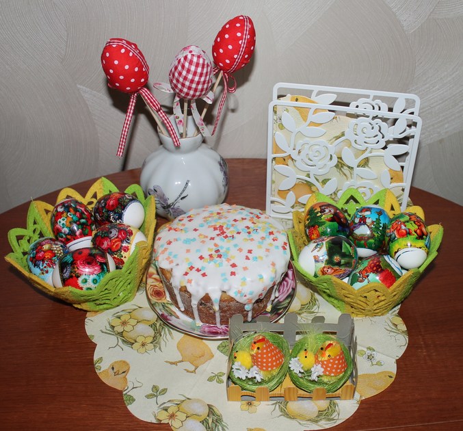 Кулич мне привезли, яйцами Полина занималась, а я сегодня весь день на уборке, завтра ждем гостей!