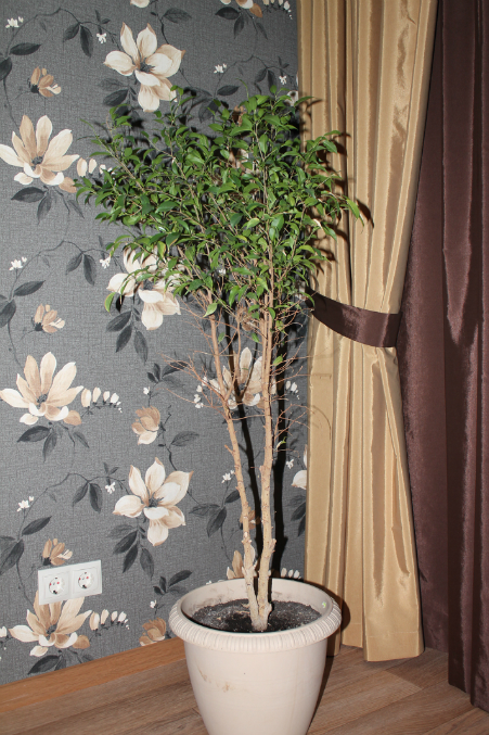 1.Фикус Бенджамина. Мне его привезли зимой в 35 градусный мороз, бедняжка от перемены температур , и смены места жительства устроил такой листопад, что остался почти лысым((( я носилась с ним как с маленьким ребенкам брызгала по часам, лечила и он ожил!!! на нижних веточках уже тоже есть единичные листочки, надеюсь скоро мой красавец будет еще краше!!