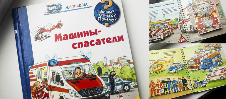 Книжка-игрушка про машинки, конечно, стала у нас хитом. Кириллу то пока невдомек, что техника чужеземная. Иллюстрации блеклые, текст сухой и местами бессвязный. Зато крепкие окошки, открываются легко, но не без усилия, так что мелкая моторика развивается - мама радуется :)