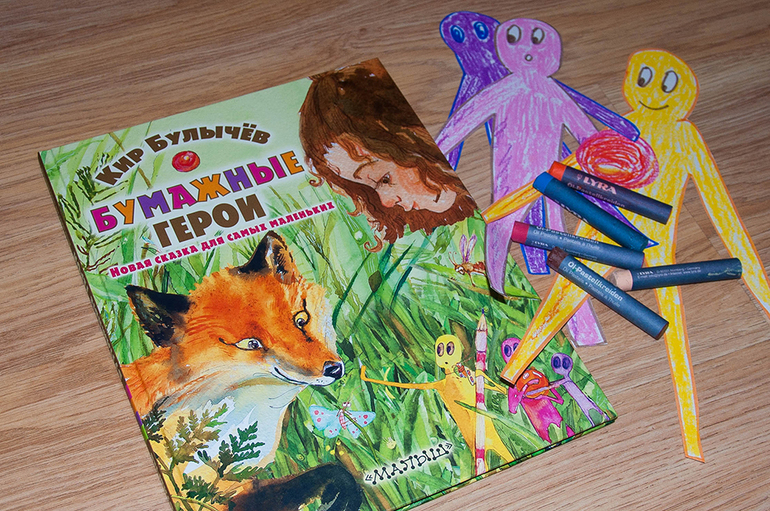 А какие в книге иллюстрации! Вы уже заметили, да? Екатерина Муратова не только расчудесно проиллюстрировала сказку, но еще и пригласила маленьких читателей заняться творчеством (человечков легко повторить). Мы с Кириллом сразу после прочтения и приступили. Бумажная троица уже живет у нас в квартире, надо будет и домик им соорудить.
