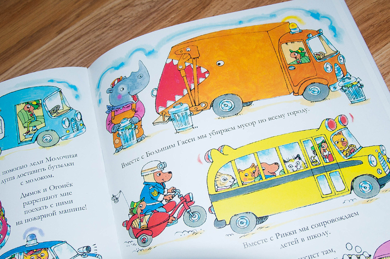 Эта книга - самое удачное наше с Кириллом 2г5м приобретение за последнее время! Её бы раньше - года в два, и до «Города добрых дел». Текста здесь меньше, сюжеты проще. Из общего - есть немного о профессиях, немного о технике.