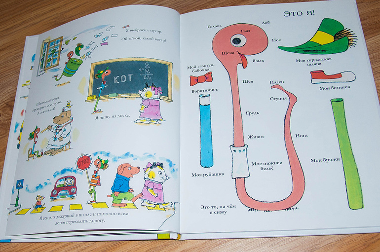 Кириллу очень нравится страница с краткой анатомией червячка. - Это что? - главное не забыть указать ни на один предмет.