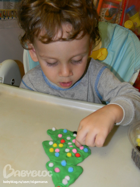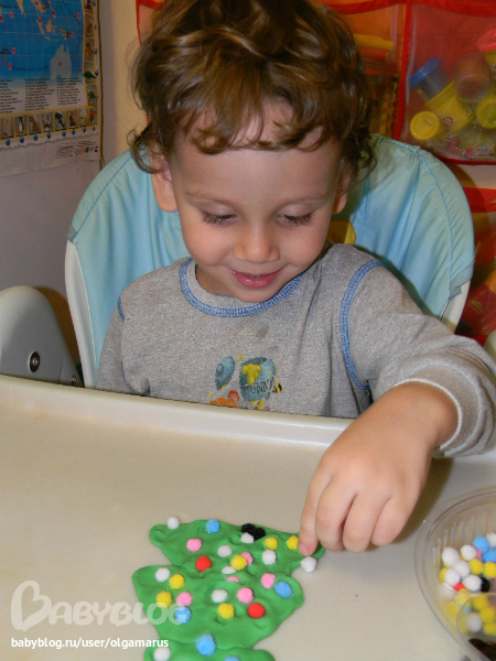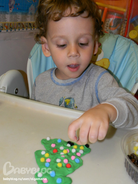 Игры с пластилиномПриступаем к украшению ёлки из пластилина...