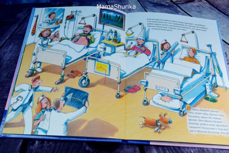 Так вот, эта книга о профессиях , в ней 10 картинок , мне она очень нравится, так как помимо развлечений и поиска несуразностей, тут можно многое обсудить с ребёнком.